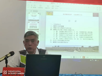 首次讲座由高级工程师,原三门峡市外经贸局局长、党委书记,三门峡工学院副院长,三门峡市虢国文化研究会特约研究员,三门峡市社科专家刘宗武同志主讲。他以“忠君报国,崇德尚武”是虢国文化的精髓为题,做了一场立意高远、内容丰富、史料翔实、生动有趣的虢国文化讲座。