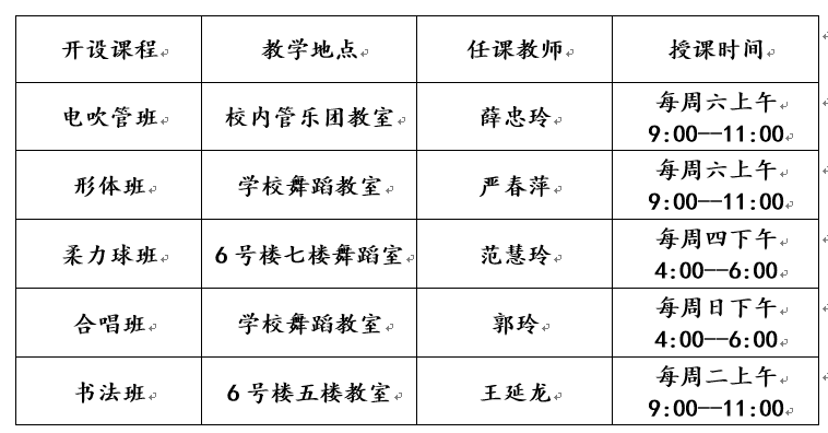 2024年秋季暂时设置电吹管、形体舞蹈、柔力球、合唱、书法等5个特色线下教学班,面向市内招生。