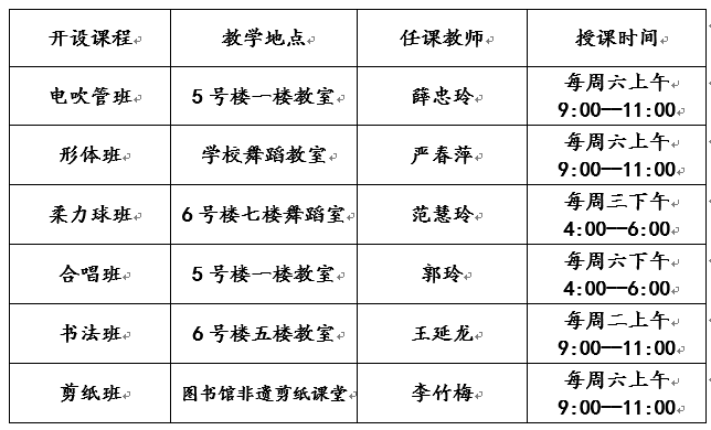 2025年上半年举办电吹管、形体舞蹈、柔力球、合唱、书法、剪纸等6个特色线下教学班,面向市内招生。
